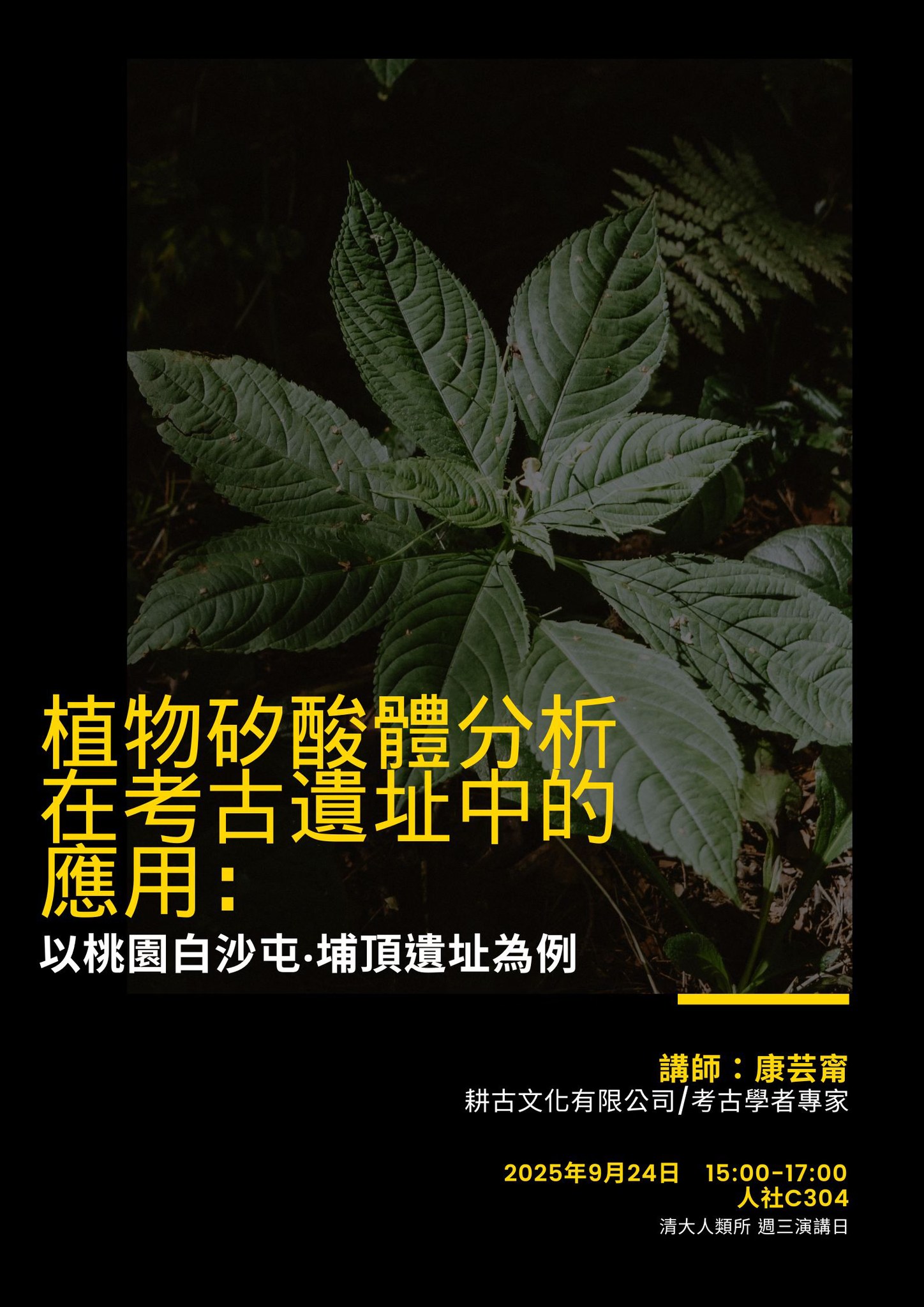 演講主題:植物矽酸體分析在考古遺址中的應用:以桃園白沙屯‧埔頂遺址為例